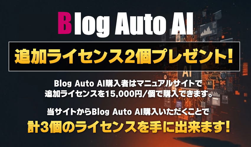 期間限定特典:Blog Auto AI追加ライセンス2個をプレゼントします!