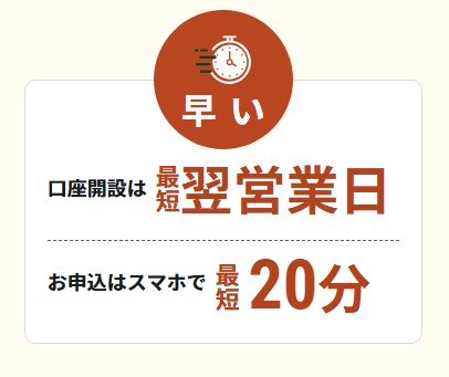 オンラインで簡単にお申し込みができ、最短翌営業日に口座開設が可能です。