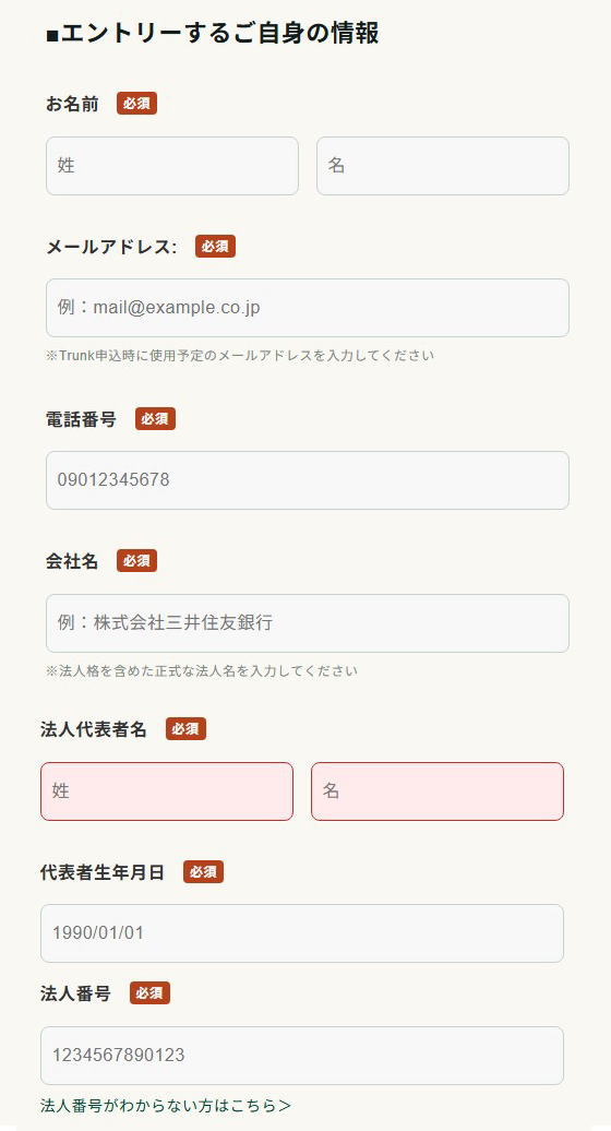 手順1:Trunk法人紹介キャンペーンエントリーページ