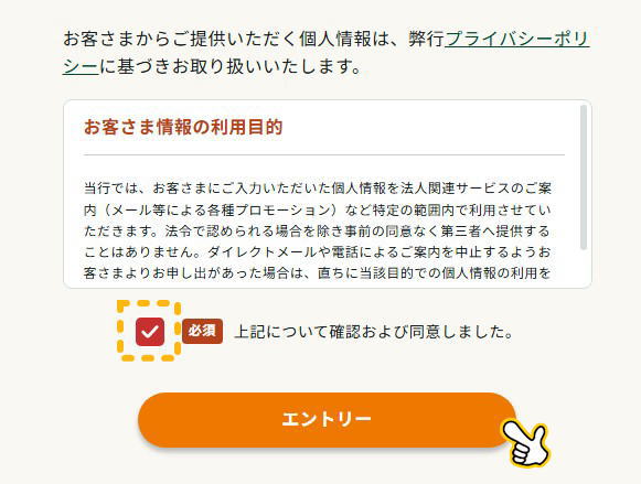 上記内容に同意にチェックしてエントリーボタンをクリックします。