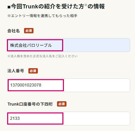 こちらのTrunk法人紹介キャンペーンエントリーページを開いてください。