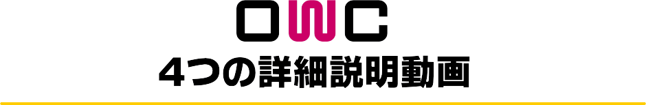 OWC公式サイトを見ていただいて、ある程度提供しているサービスをご理解いただけたかと思いますが、もう少し踏み込んで細かいところをお伝えできるように、4つの詳細説明動画を準備しましたのでどうぞご覧ください。