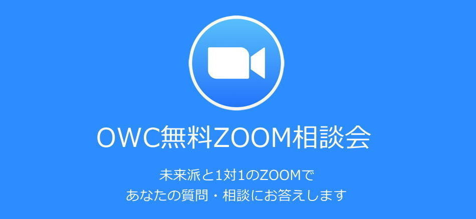 そんな方のために「OWC無料ZOOM相談会」を設けました。あなたが不安に思っている質問、相談に未来派と1対1のZOOMでお答えします。(ミーティング時間20分程度)