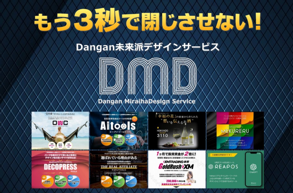 これまで600以上のLPをデザインしてきた未来派野郎hiro提供の「DMD:Dangan未来派デザイン」は、あなたの1カラムランディングページ・スクイーズページを未来派流にデザインカスタマイズするサービスです。