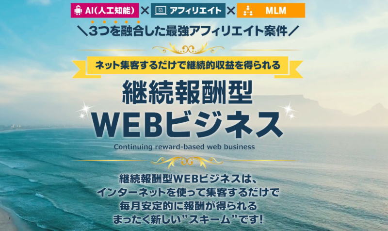 2023年10月から継続報酬型WEBビジネスに参加し、新しいキャッシュポイントの構築に成功しました。未来派はこのビジネスを「継続的な収益を得られる最強のアフィリエイト案件」ととらえています。