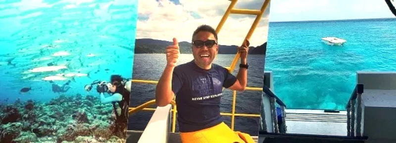 奥さんひとり+娘ひとり+愛犬リング(オス)の4人家族です。将来の夢は、3人で最高の海に潜ること。そのためにいろいろな海に潜り、最高の海を探しています。