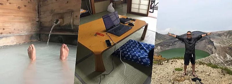 温泉が大好きです。仕事が行き詰まったときは、ノートパソコン1台を脇に抱え、温泉宿によく向かいます。