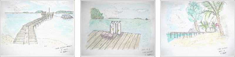 ダイビングに行ったとき、空いている時間で南の島のの風景を水彩で描きます。