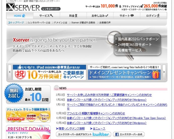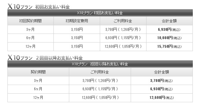 サーバーの容量によってプランがいくつかありますが、「X10プラン」で