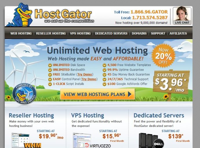 ホストゲーター(ベビープラン) 無制限 7.96ドル