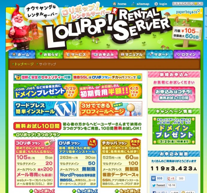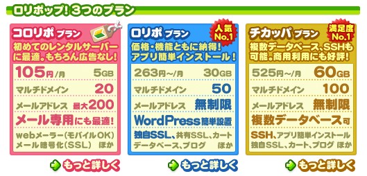| ロリポップ(ロリポプラン) | 30GB | 263円~ | 50 |