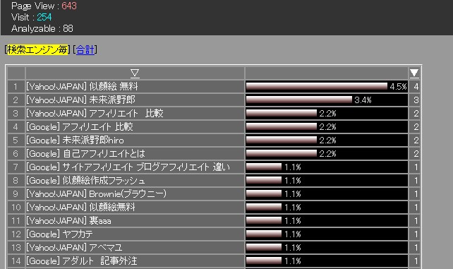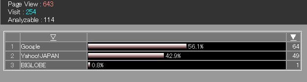 どの検索エンジンからどのくらいアクセスがあったかが一目でわかります。