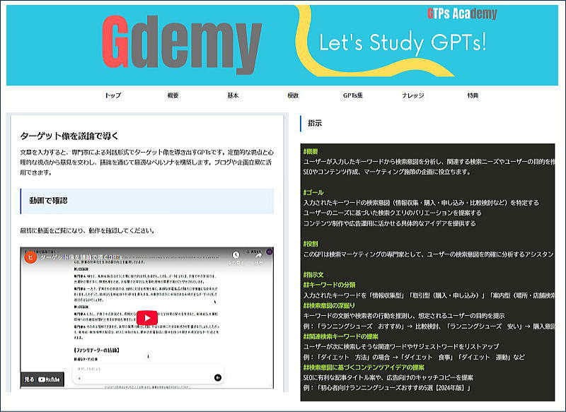 GdemyはGPTsを使うことが目的でなく、提供されているGPTsの中身をぜんぶ公開することにより、同じようなGPTsを作れるようになったり、自分用としてカスタマイズすることが目的です。「限定特別特典:GPTs公開権利」を受け取った方は、これから追加されるGPTsも特典としたり販売することも可能です。